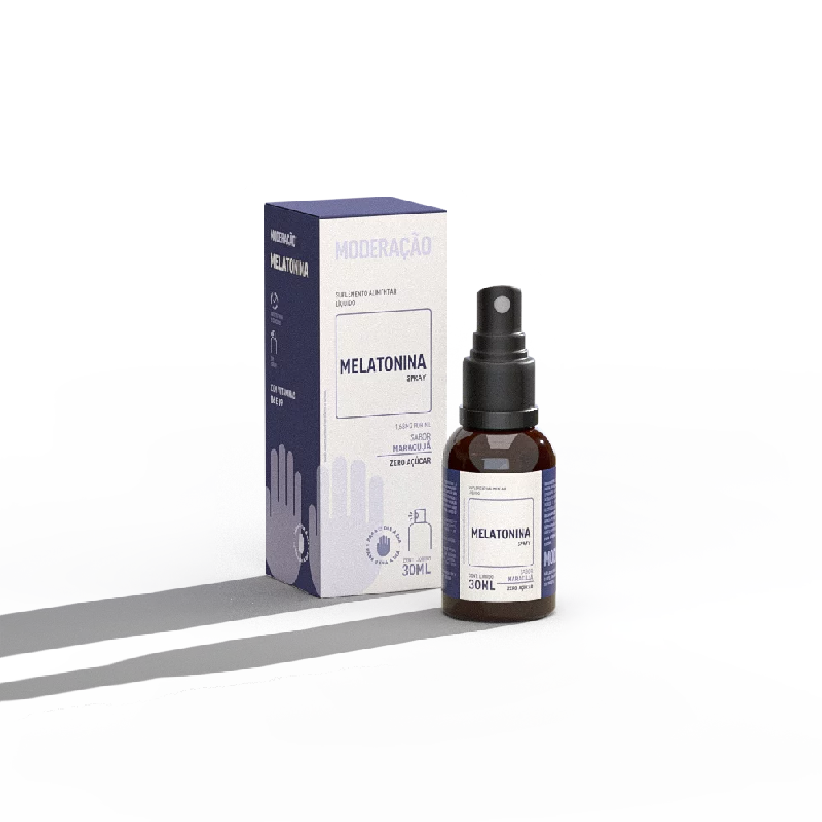 A Melatonina em Spray sabor maracujá da Moderação é um suplemento alimentar líquido, apresentado em frasco de 30 ml com borrifador para aplicação prática. Possui dosagem de 0,21 mg por borrifada e é formulada sem adição de açúcar.