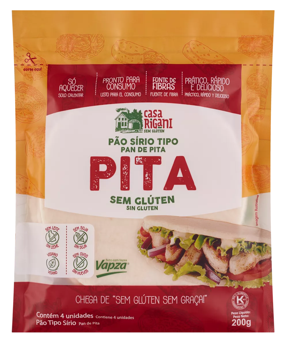 Muito popular na culinária árabe, o Pão Pita tem formato de “envelope”, ideal para rechear com os ingredientes que você imaginar e consumir como sanduíche.