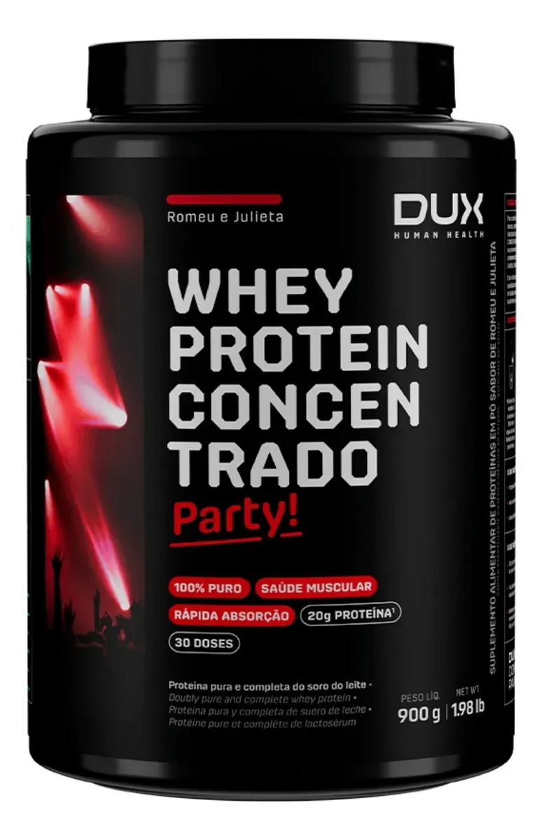 O Whey Protein Concentrado Party! traz 20 g de proteína por porção, com perfil completo de aminoácidos essenciais e rápida absorção. A linha Party! combina sabor e nutrição em versões criativas, e o Romeu e Julieta chega com o contraste perfeito entre o doce da goiaba e a suavidade do whey.
